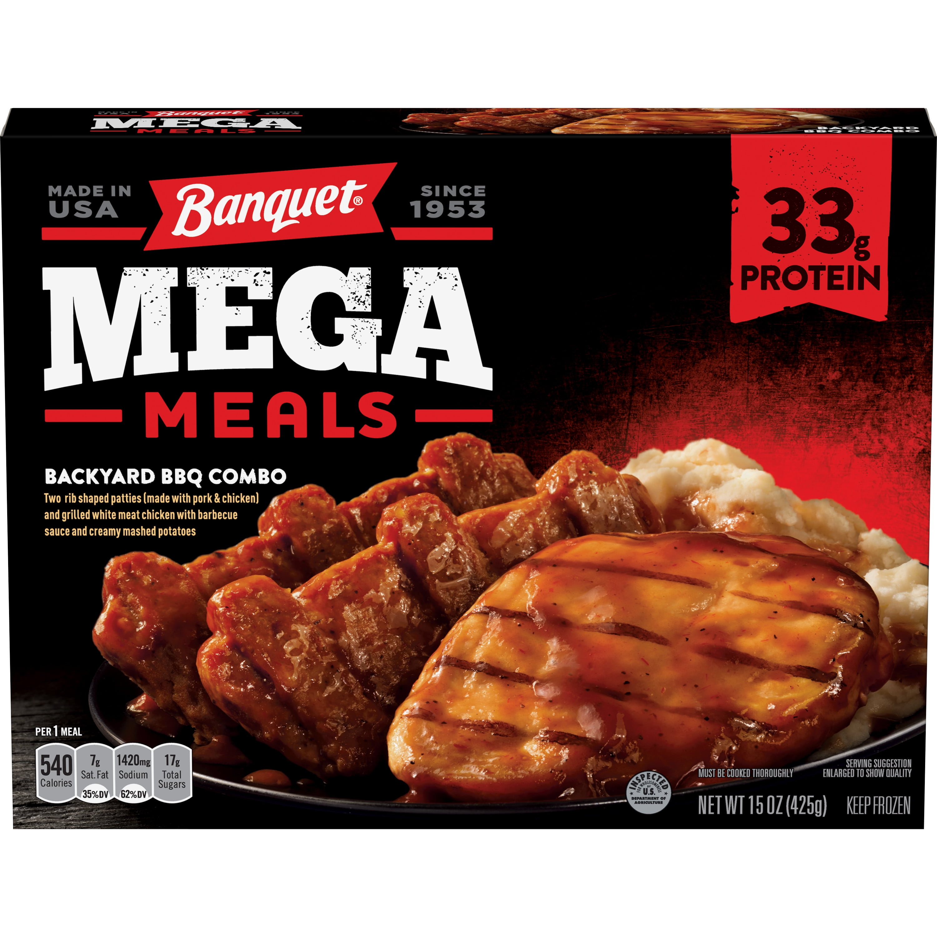 Banquet Mega Meals Backyard Bbq Combo Frozen Dinner 15 Ounce