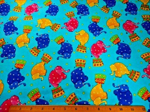 Baby Fabric 1 Yard Circus Elephants Stars Turquoise Michael Miller