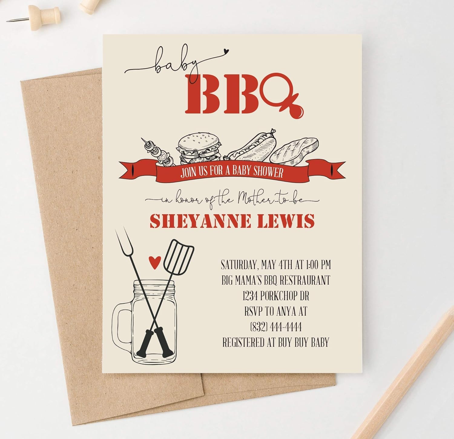 Red Barbecue Babyq Baby Shower Housewarming Card Baby Shower