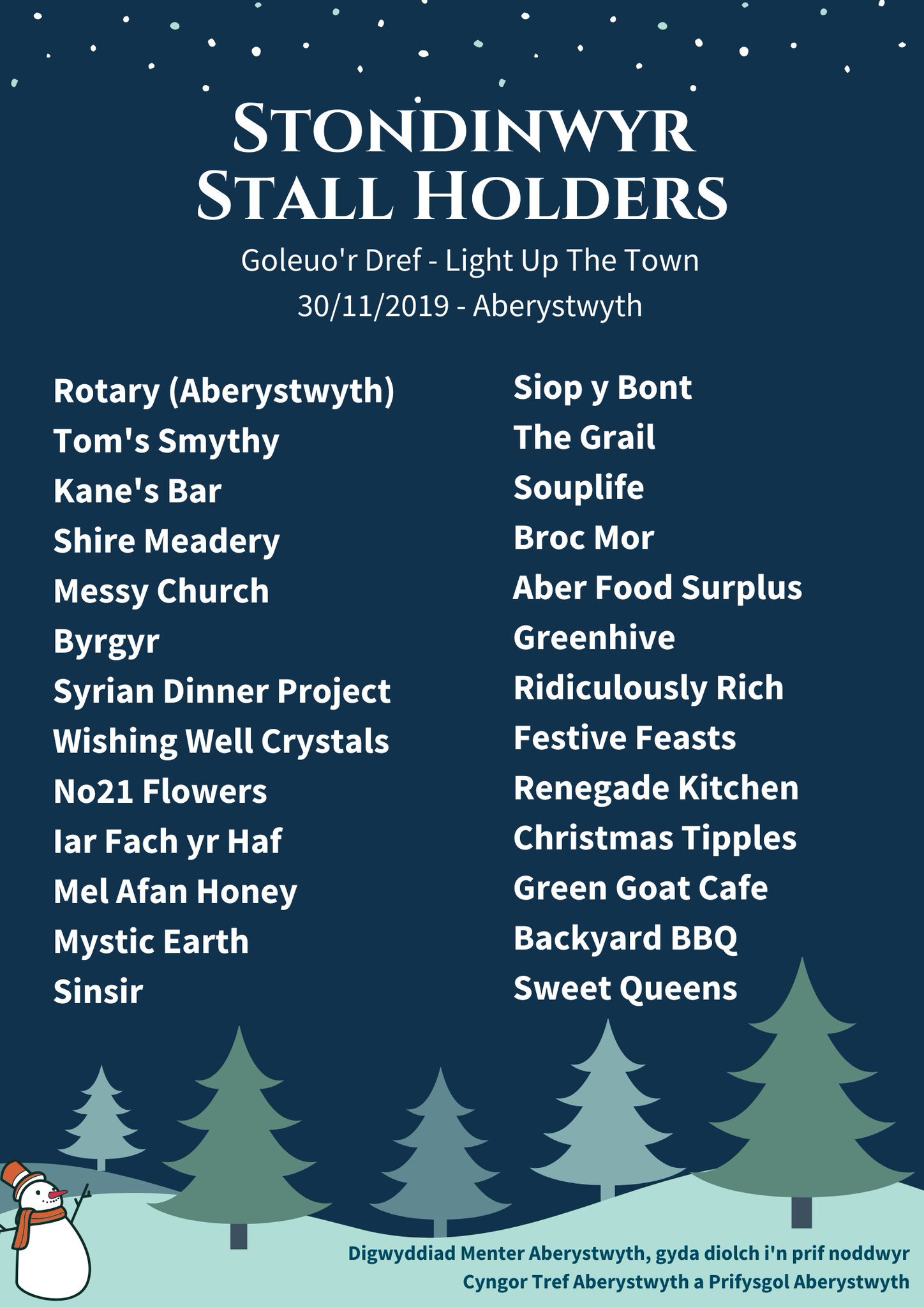 Menter Aberystwyth On Twitter Check Out The Amazing List Of Stallholders At Our Christmas Switch On Event This Weekend 30th November Baker Street In Aberystwyth