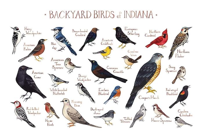 Amazon Com Backyard Birds Of Indiana Field Guide Art Print Handmade
