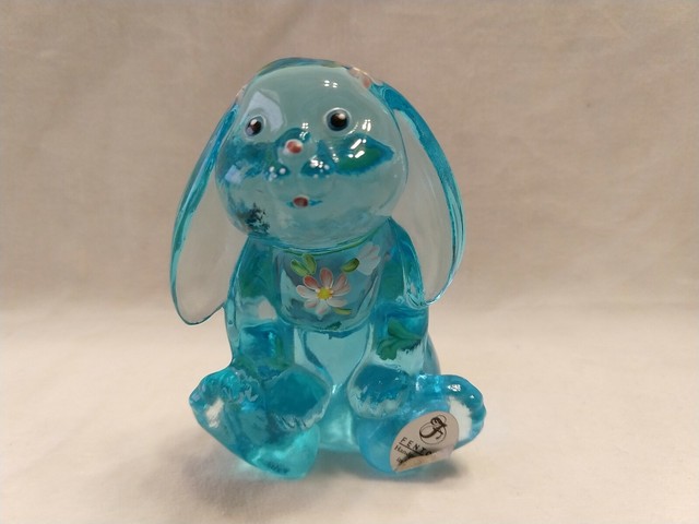 Vtg Fenton Art Glass Hand Painted Blue Bunny 5293bz Backyard