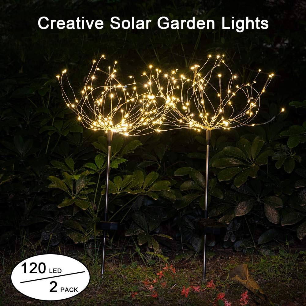 Vova 1 2 Pack Outdoor Solar Firework Lights Waterproof Garden