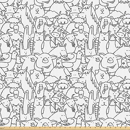 Amazon Com Lunarable Nursery Fabric By The Yard Farm Animals