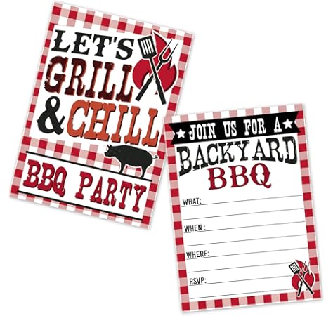 Amazon Com Bbq Invitations Summer Backyard Picnic Grill Cookout