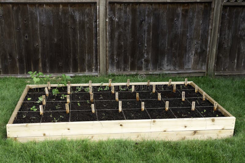 Backyard Vegetable Garden Box With Seedlings Divided By String And