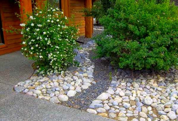 Design your river system. Landscaping with river rock can create breathtaking backyards gardens and patios. Add a few rocks boulders in the narrow sections to create rapids make side pools and tributaries.