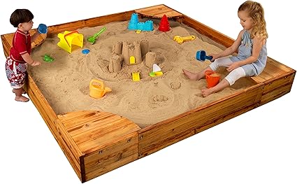 Amazon Com Kidkraft Wooden Backyard Sandbox With Built In Corner