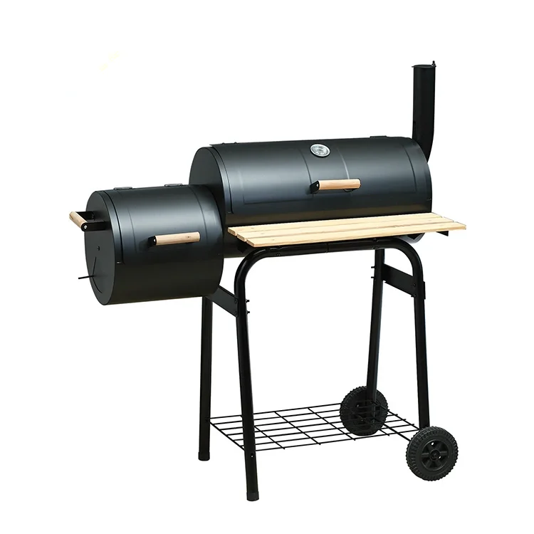 Charcoal Grill Barrel Outdoor Bbq Picnic Camping Patio Backyard Barbecue Trolley Smoker With Folding Side Table Bbq