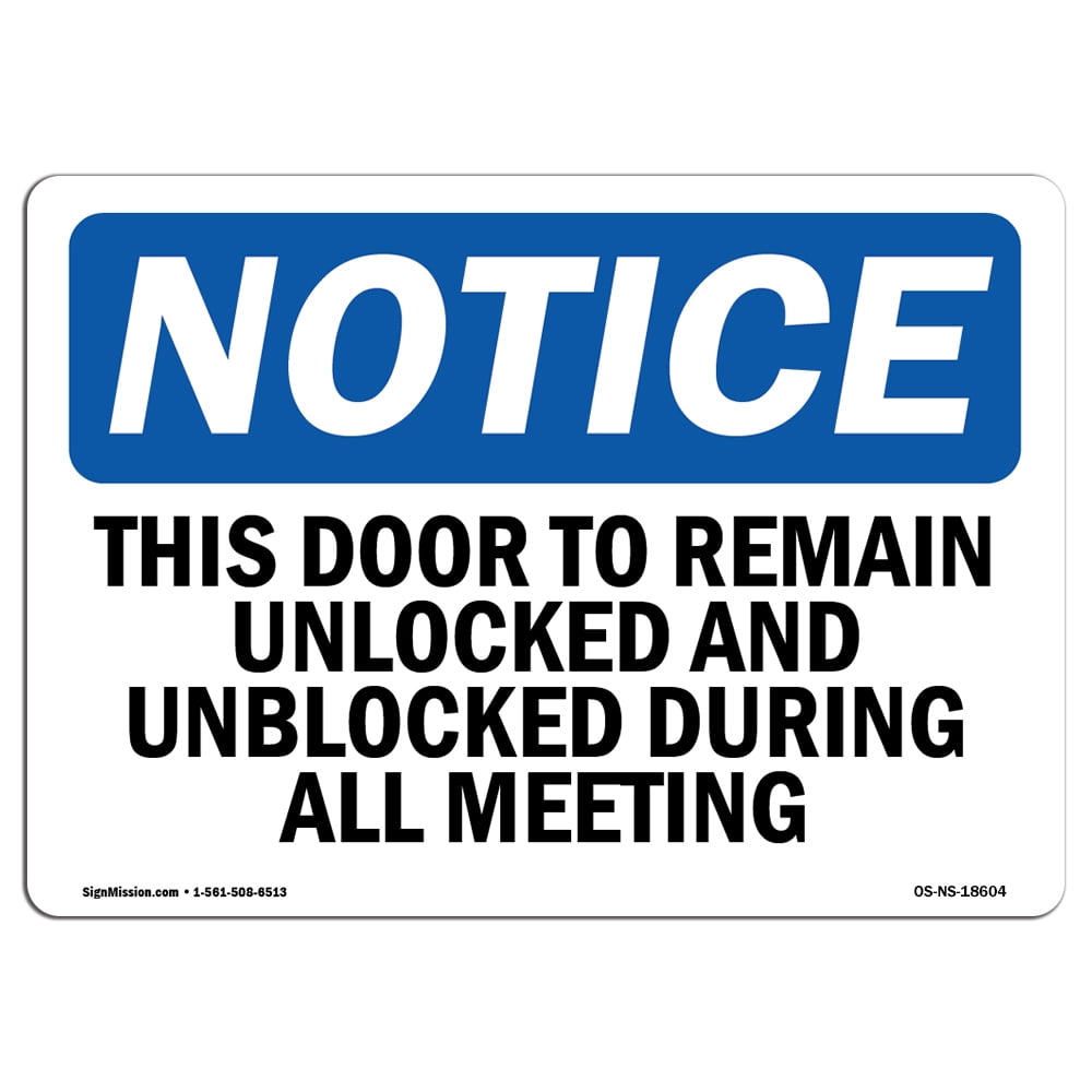Osha Notice This Door To Remain Unlocked And Unblocked Sign