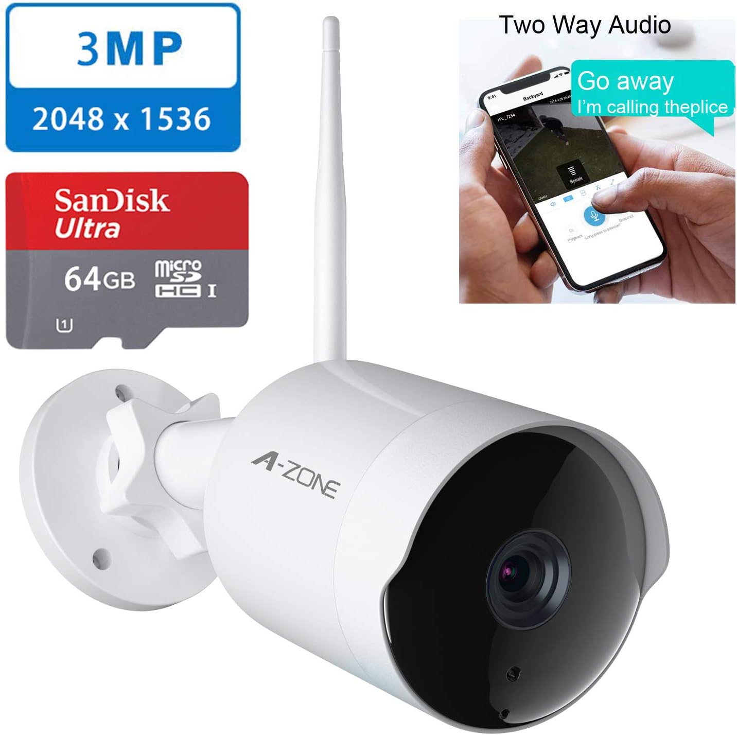 Amazon Com A Zone Security Camera Outdoor Hd 3mp 1536p Bullet