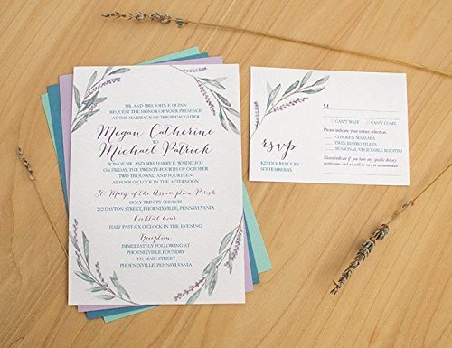 Amazon Com Lavender Wreath Wedding Invitation Watercolor Wedding