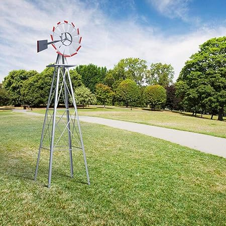Amazon Com 8ft Ornamental Garden Windmill Galvanized With Red