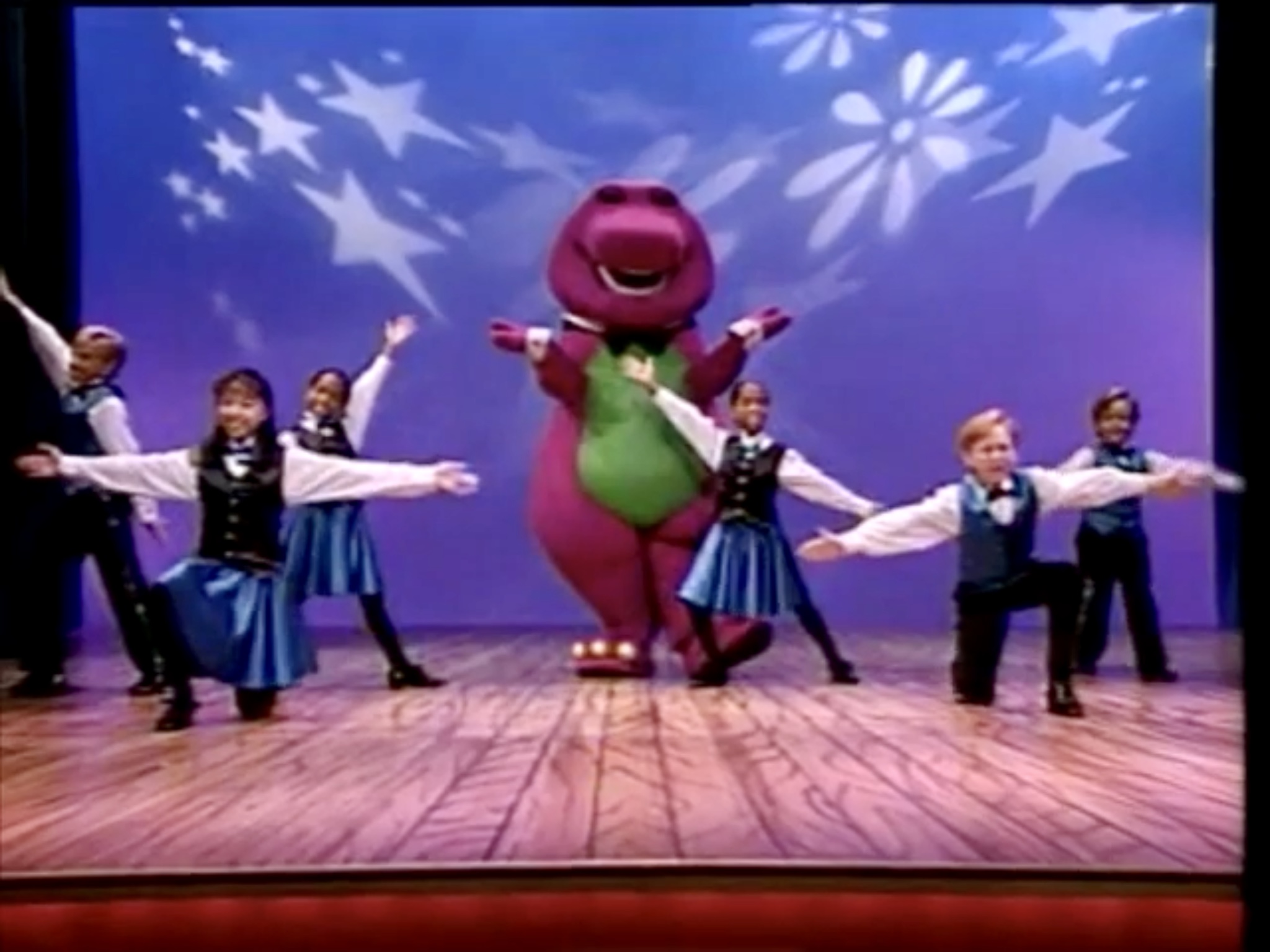The series focused on a purple tyrannosaurus rex named barney and a group of kids known as the backyard gang and the adventures they take through their imaginations. The backyard show 1988 duration. Following the acquisition of lyrick in 2001 hit entertainment only used the logo and company name to reference lyrick related merchandising and shows until 2005.