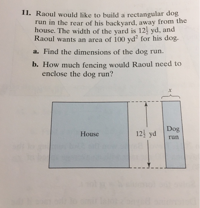 Solved 11 Raoul Would Like To Build A Rectangular Dog Ru Chegg Com