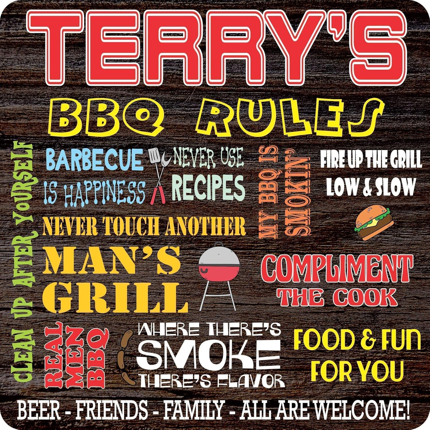 Amazon Com Custom Bbq Rules Sign Backyard Barbecue Decor Handmade