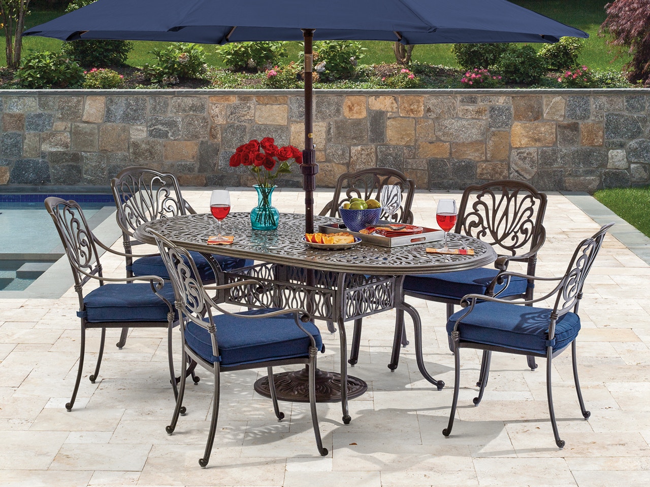 Outdoor Patio Carlisle Aged Bronze Cast Aluminum 7 Pc Dining Set