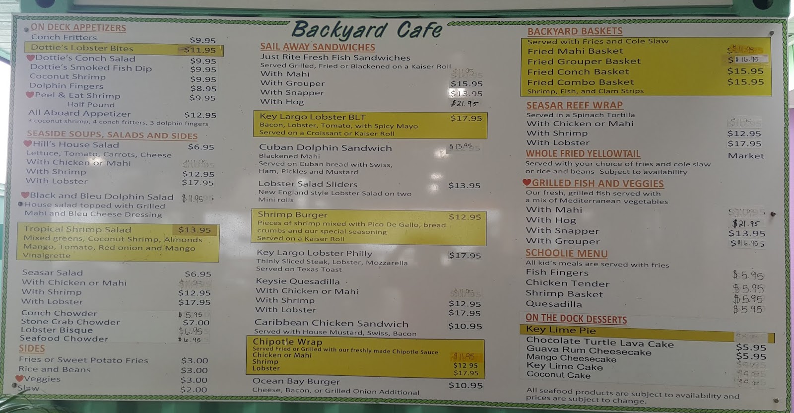 Key Largo Fisheries Backyard Cafe Menu