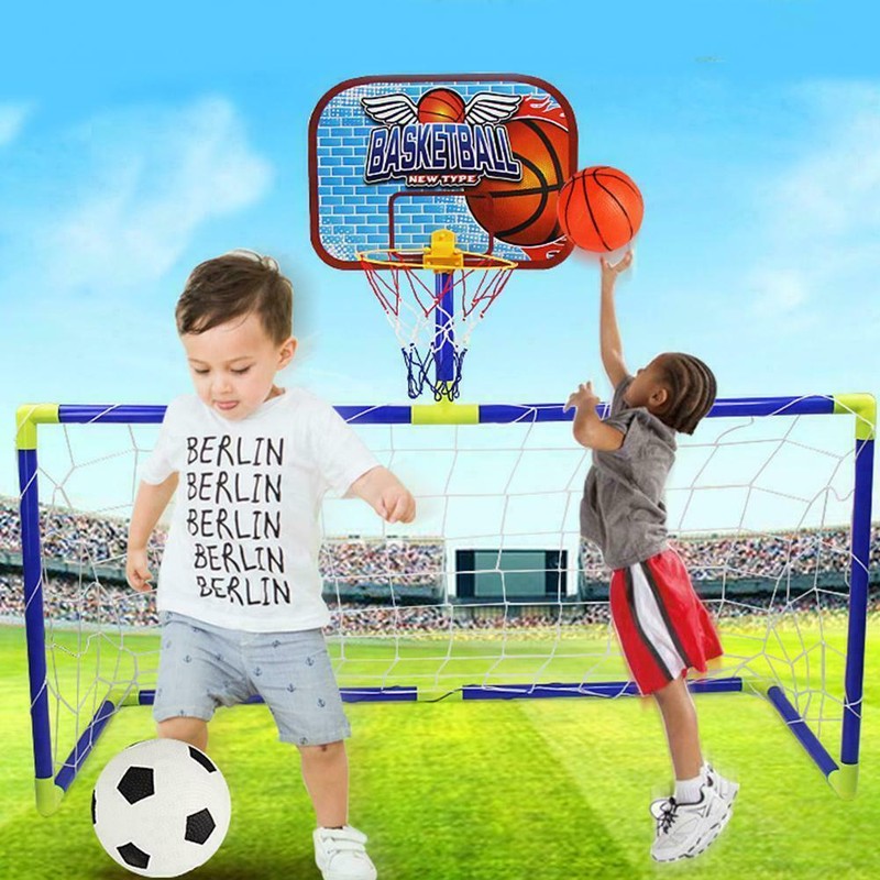 Kids Soccer Goal Net And Basketball Hoop Stand Backyard Football
