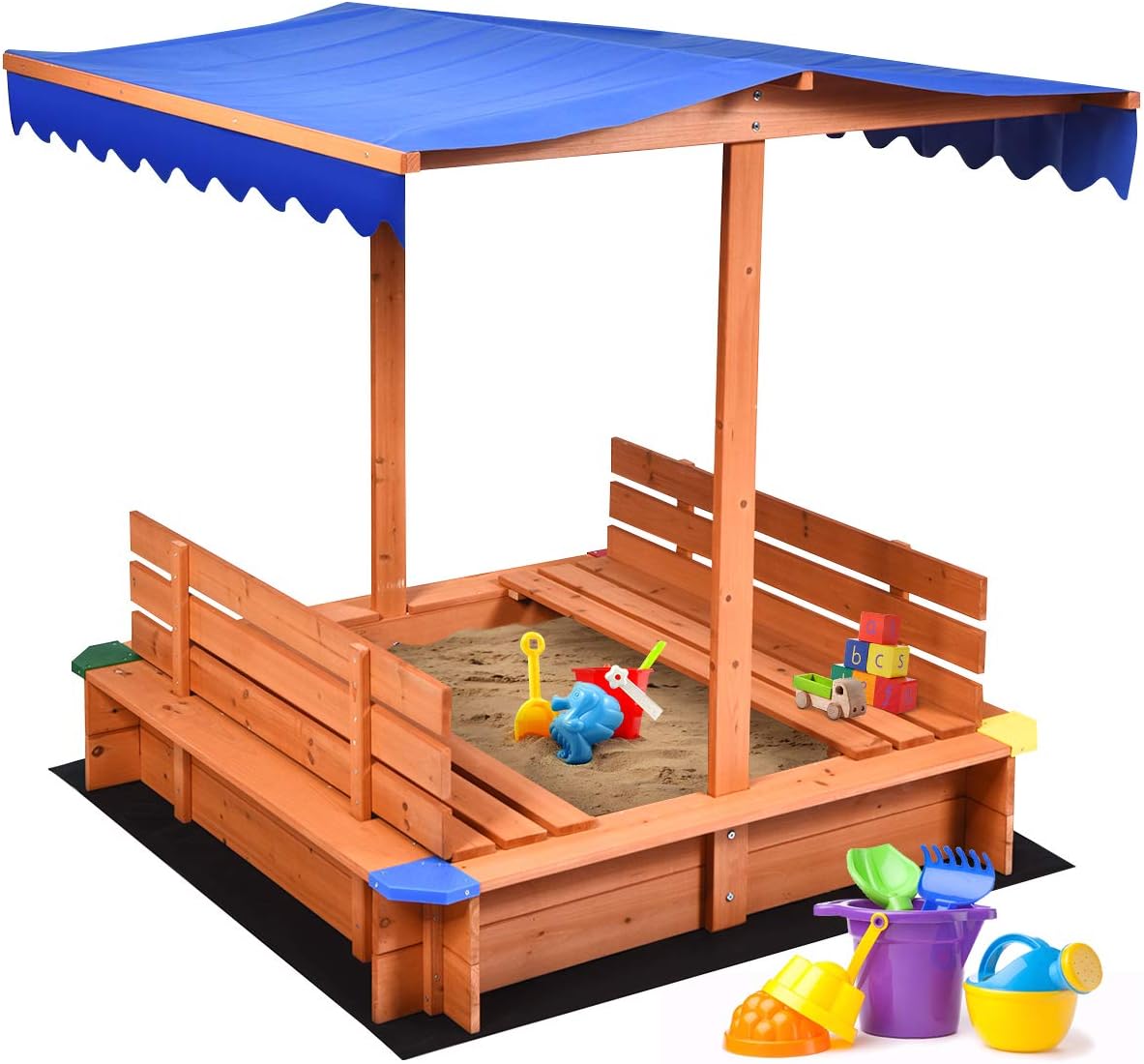 Amazon Com Costzon Kids Wooden Sandbox With Canopy Cedar Square Cabana Sandbox With 2 Bench Seats Non Woven Fabric Cloth Children Outdoor Playset For Backyard Home Lawn Garden Beach Toys Games